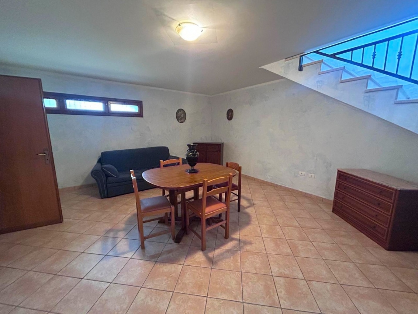 Piano Cantinato: scala, unico grande ambiente, bagno, lavanderia, ripostiglio, lavanderia