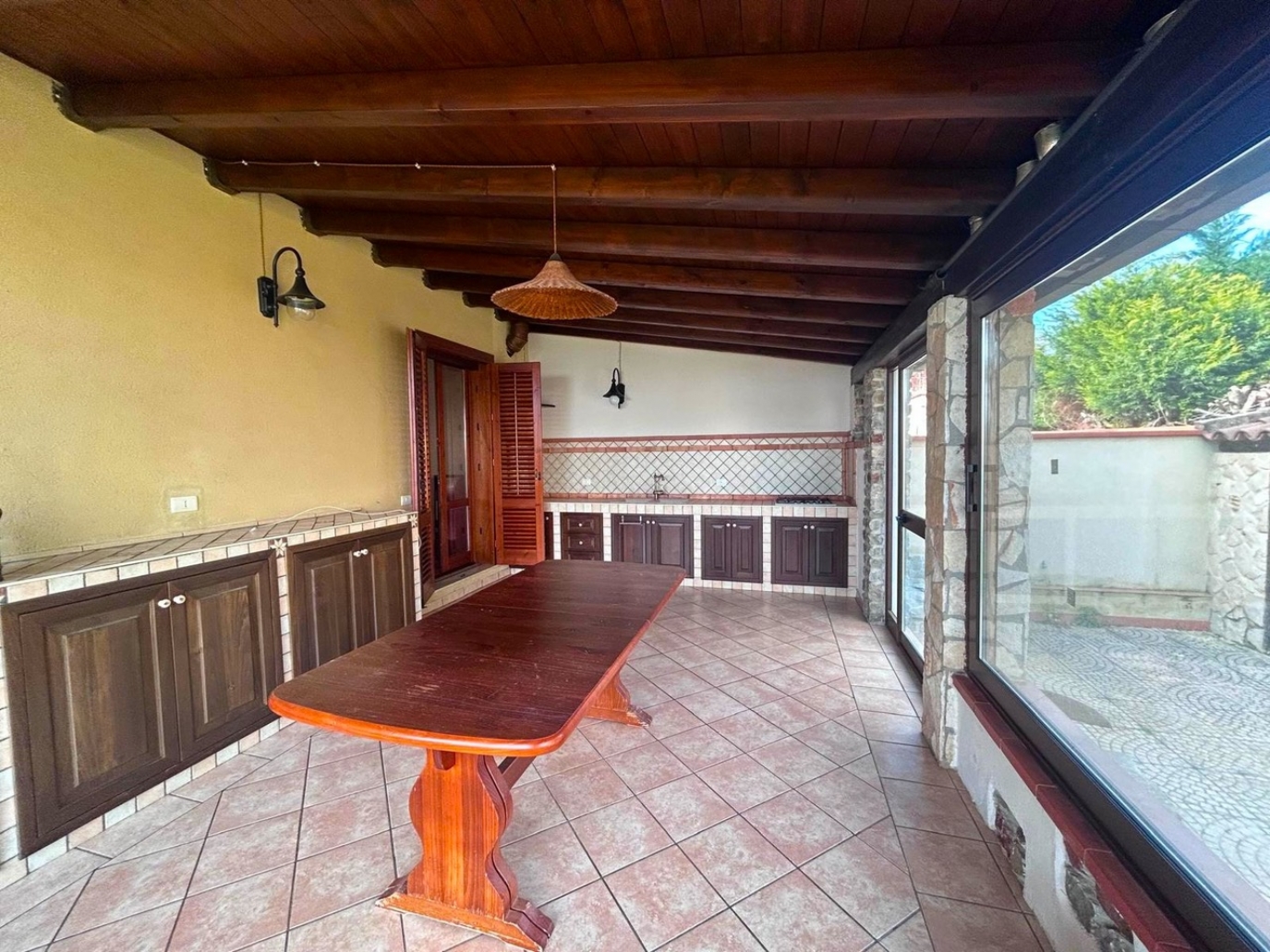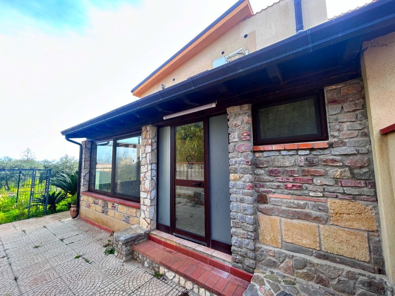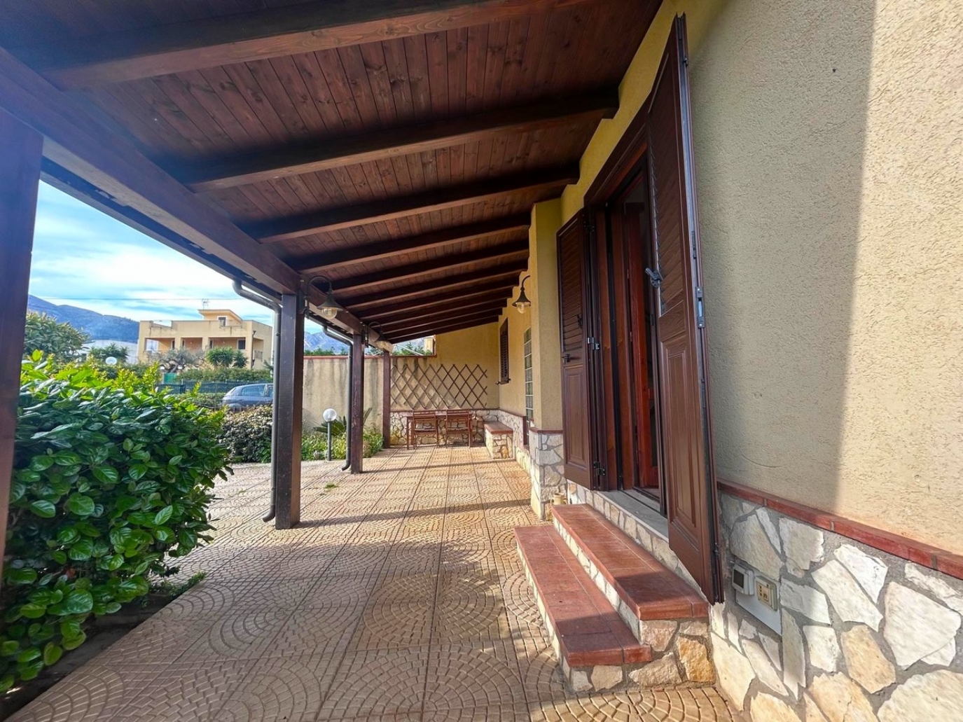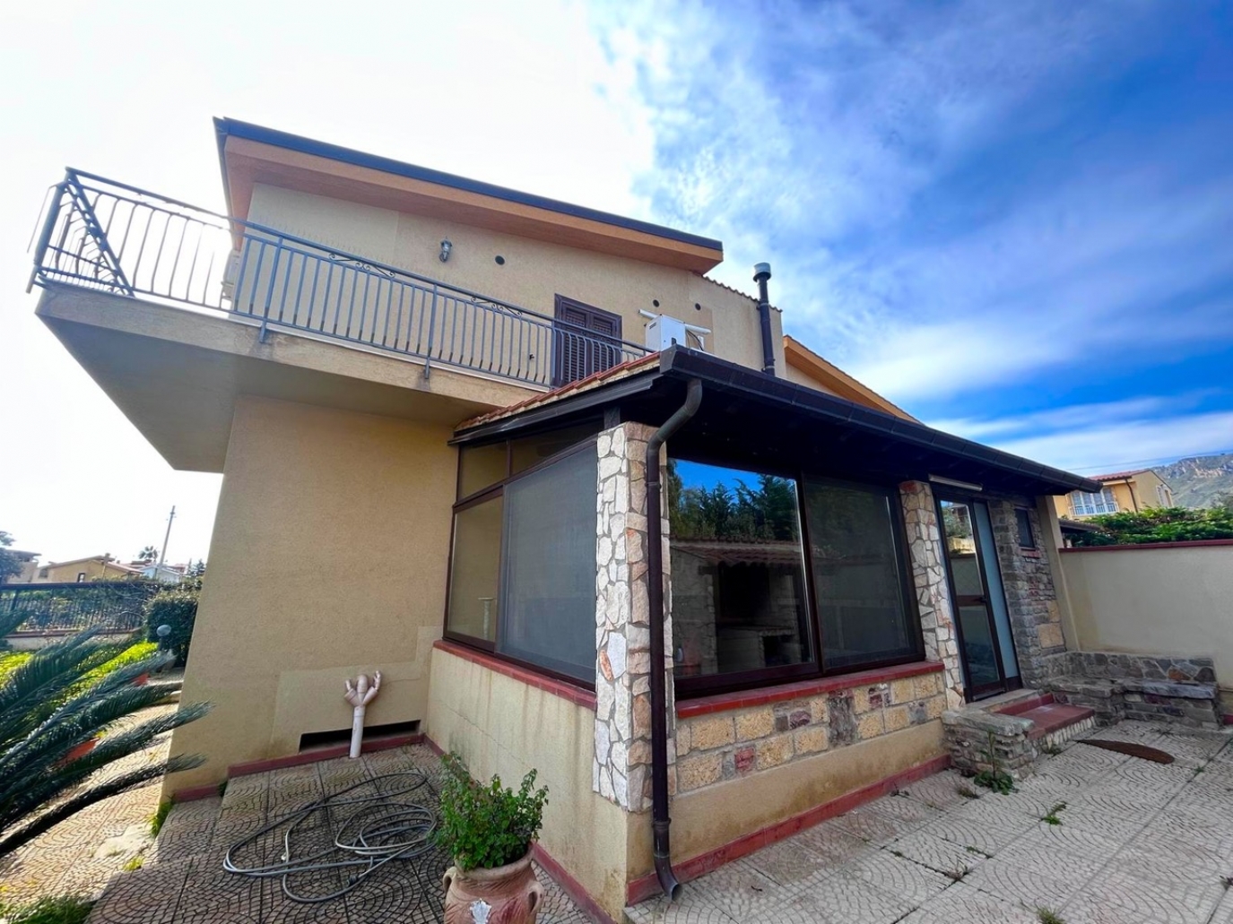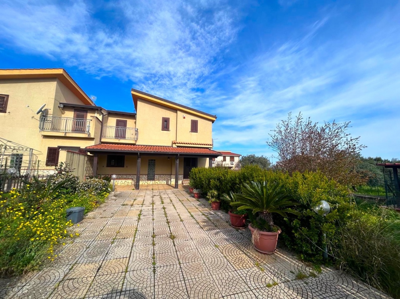 Altavilla Milicia nella provincia di Palermo in Sicilia e precisamente in contrada Santoro a poche centinaia di metri dal centro urbano, disponiamo in locazione residenziale panoramica e Rifinita Porzione di Villa Bifamiliare di 220 mq. su tre livelli oltre portico coperto, veranda chiusa adibita a cucina con angolo cottura in muratura e circa 500 mq. di giardino alberato con varie piante esotiche e spazi esterni di pertinenza. PARZIALMENTE Arredata e di Ottime Rifiniture.